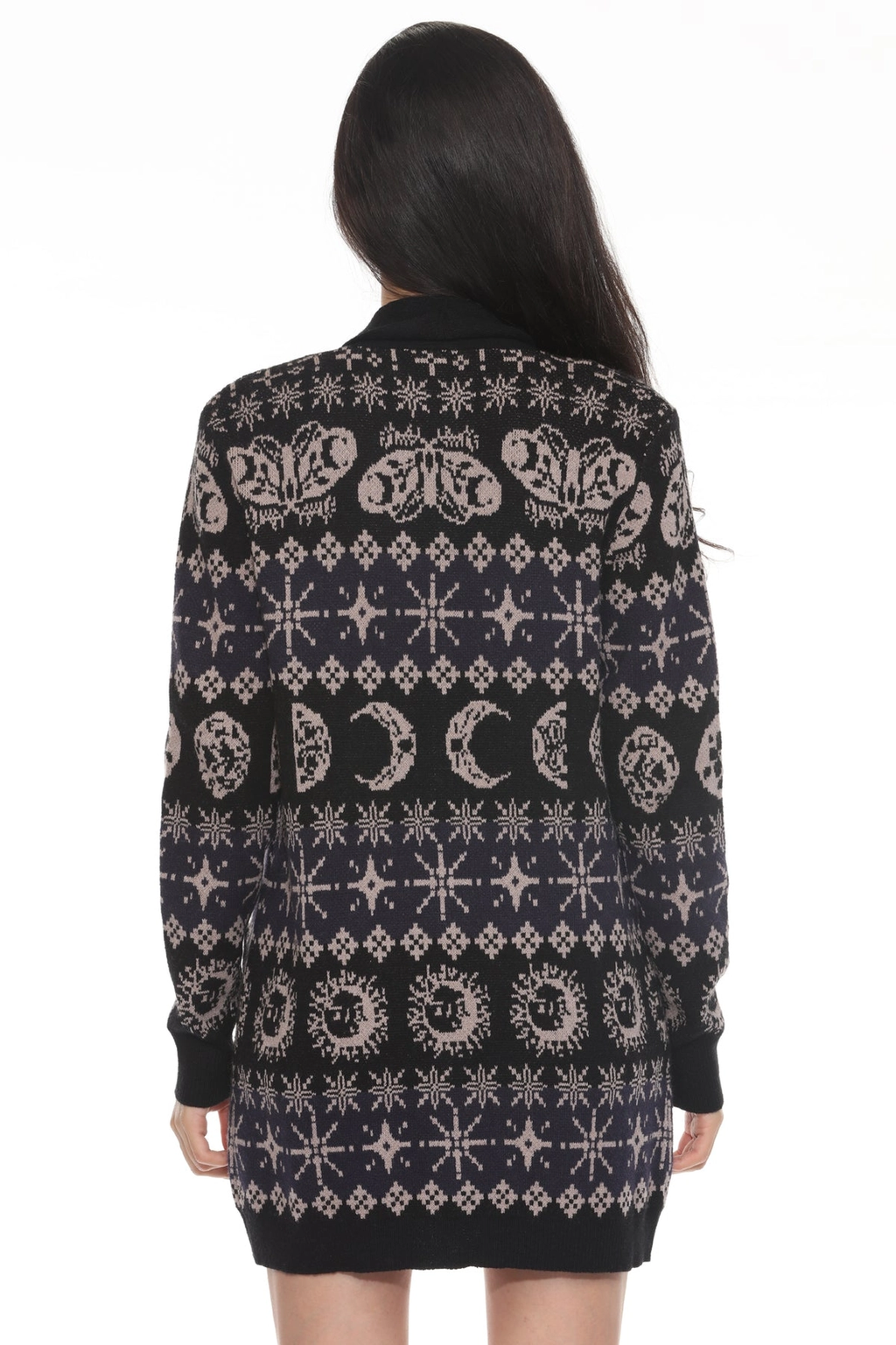 The Fair Isle Celestial Cardigan combines cozy comfort with timeless style, featuring intricate celestial and snowflake-inspired patterns in a classic Fair Isle knit. Designed with an open front and a relaxed silhouette, this cardigan is perfect for layering over your favorite tops and dresses. It offers a warm yet lightweight feel, making it ideal for both casual and dressed up looks.