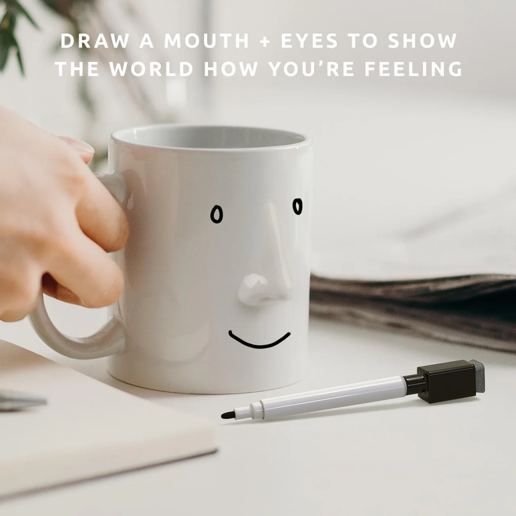 Each time you have a coffee or tea, doodle on the mouth and eyes to share your mood with your friends, family and colleagues.