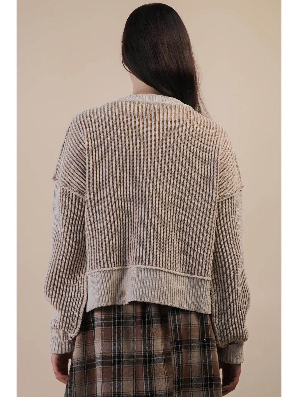 - Two Tone Striped Casual Stripe Sweater Top