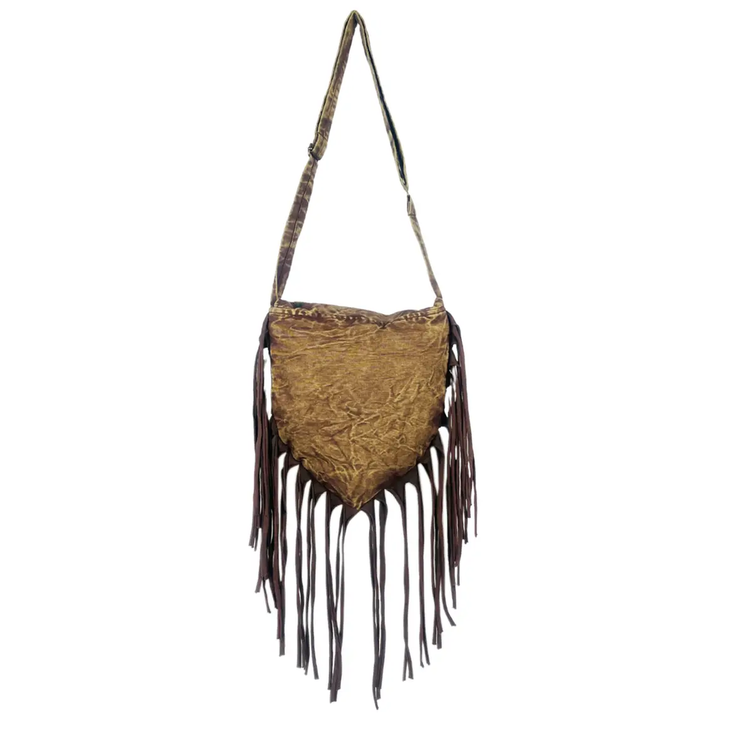 This bohemian-inspired crossbody bag features a unique cat appliqué design, complemented by long side and bottom fringe elements for added visual appeal. Designed with both style and functionality in mind, this bag blends artisanal craftsmanship with playful character, making it an excellent addition to boutique fashion collections.