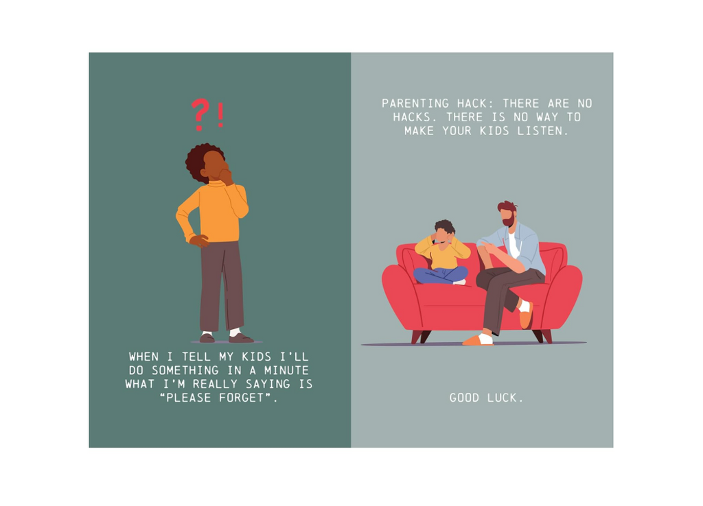 Perfect if you’re looking for parenting gifts for men, men's gifts for Father’s Day, Christmas gifts for him, gifts for new dads, a tongue-in-cheek gift for men, or general funny parenting books, this illustrated hardback new dad book is the perfect (and useful) gift to make raising kids a breeze!