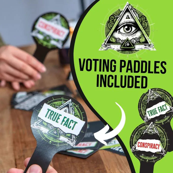 The perfect party game for adults, grab your paddles and vote ‘True Fact’ or ‘Conspiracy’ against cards like ‘A group of rich influential men annually perform rituals in front of a giant owl statue in Mont Rio, California’. Will you rumble your friend’s ruse? Or can you catch the conspiracy?