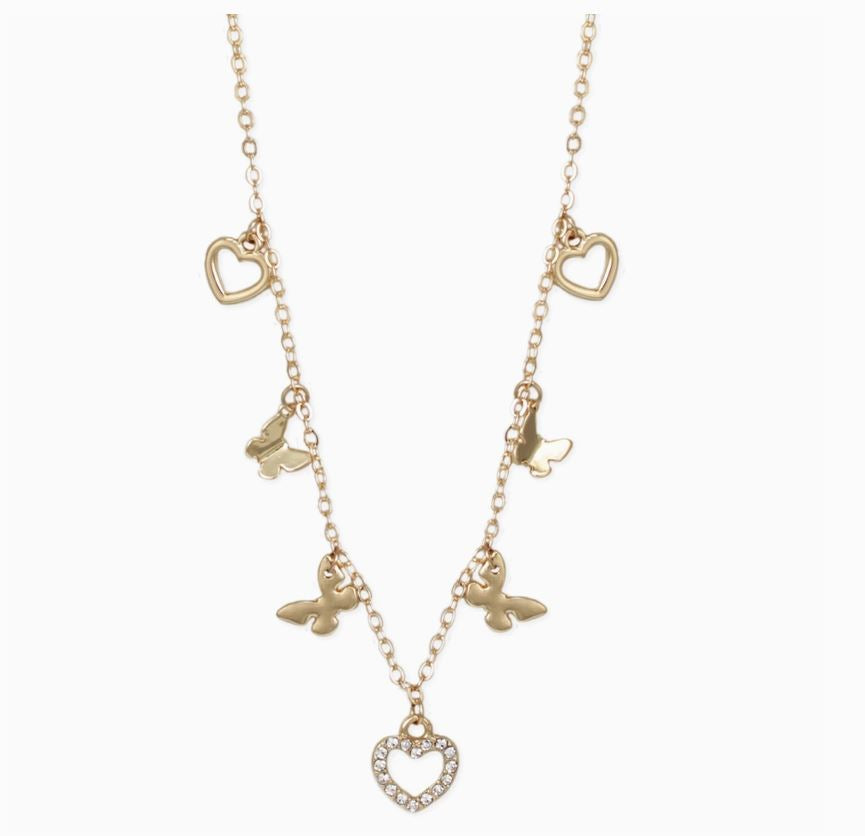 * Butterfly heart charm gold necklace