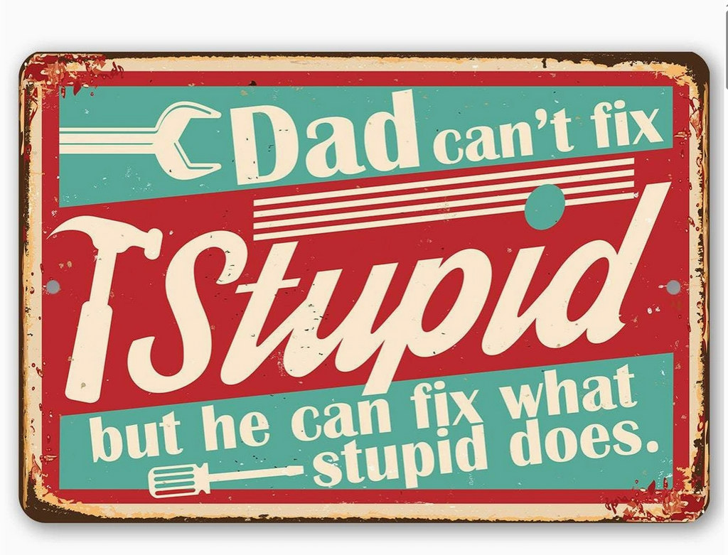 Sign - Metal Dad Can't Fix Stupid