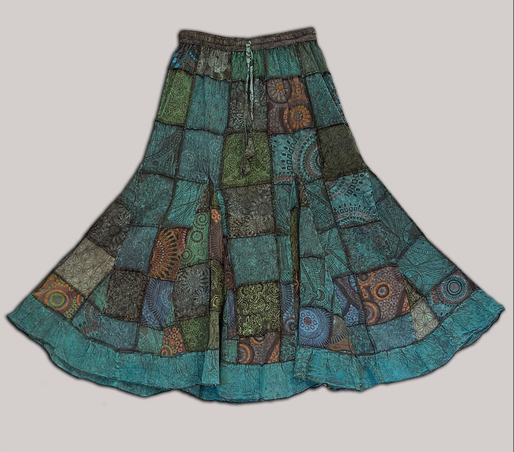 EARTH MAMA MAXI SKIRT Cotton Patchwork Skirt w/ Elastic Drawstring Waist Maxi Skirt